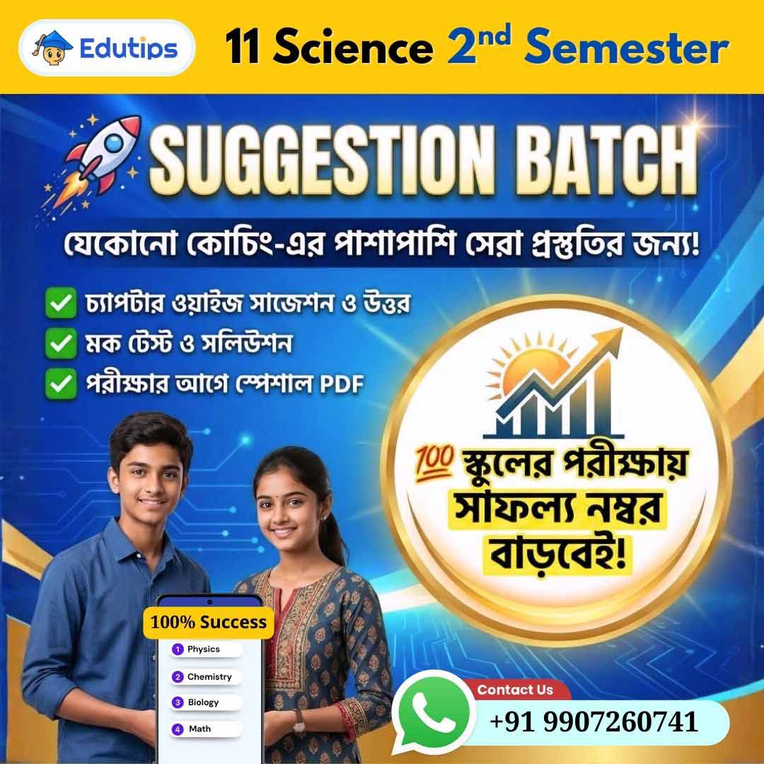 একাদশ শ্রেণির দ্বিতীয় সেমিস্টার (Class 11 Science) – Suggestion Batch 2026 + Mock Test : Final পরীক্ষার জন্য EduTips নিয়ে এসেছে একটি Complete Suggestion & Practice Batch, যা সম্পূর্ণভাবে Exam Focused।